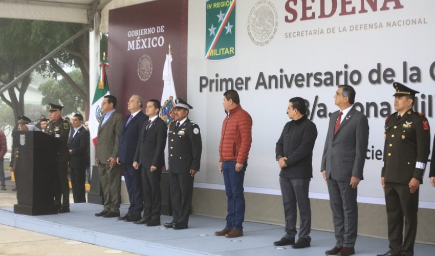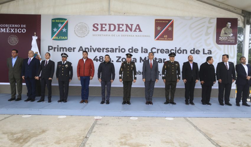 Ante la presencia del general brigadier DEM Fernando Lima Cuauhxochilt, jefe de estado mayor de la 48/a Zona Militar, quien presidió la ceremonia del primer aniversario, la cual pasó revista de entrada el primero de diciembre de 2021, también destacó la labor del Ejército en obras sociales y apoyo comunitario como las sedes del Banco del Bienestar, que son claves para la dispersión de recursos de los programas sociales del presidente.