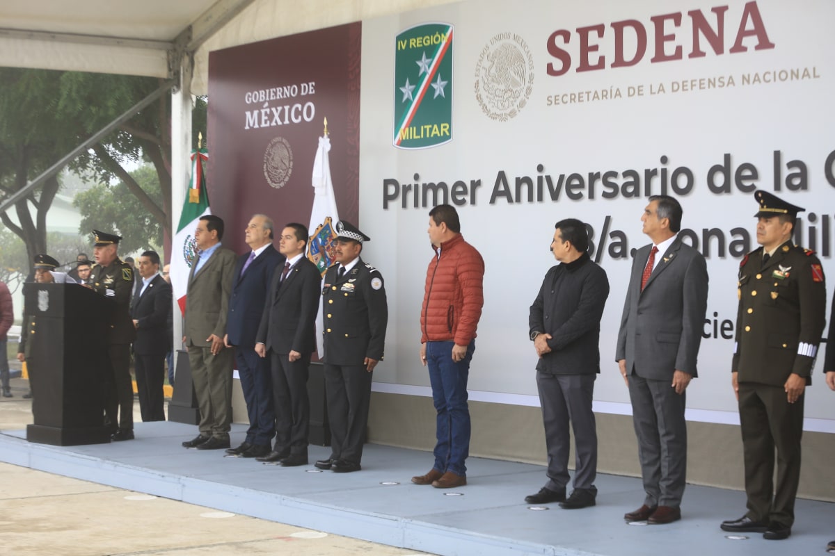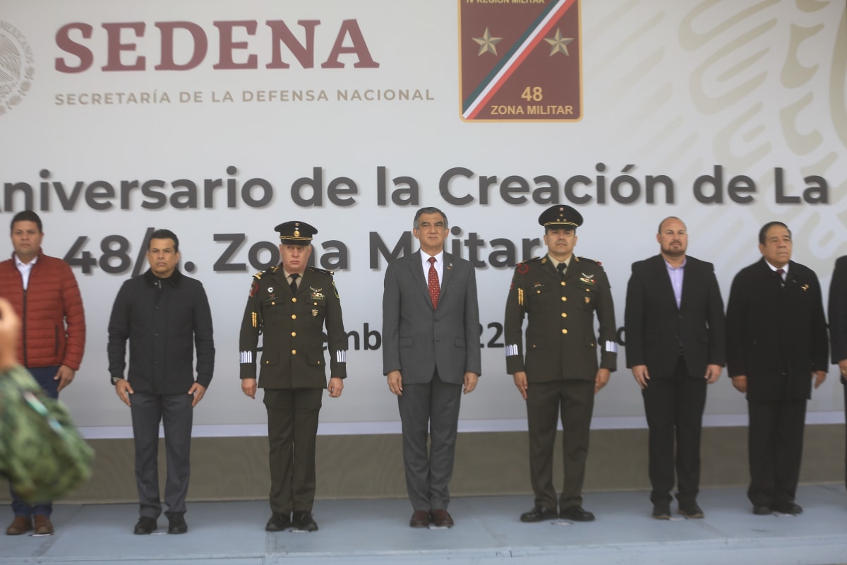 Al asistir este lunes a la ceremonia cívica de honores a la bandera, en la explanada del Campo Militar del 77 Batallón de Infantería, donde se conmemoró el primer aniversario de la 48/a Zona Militar, señaló que desde el pasado 1 de octubre, las Fuerzas Armadas han asumido una participación activa y de apoyo al desarrollo general de Tamaulipas, y en particular su respaldo a la nueva estrategia de seguridad, ha sido muy valioso.