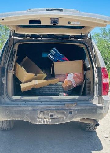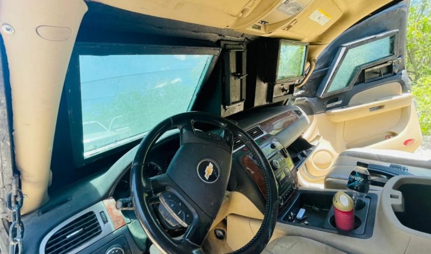 El reporte de Seguridad Pública indica que en Cruillas, se localizó una camioneta abandonada con impactos, ponchada y en el interior un chaleco táctico, cargadores y cartuchos.