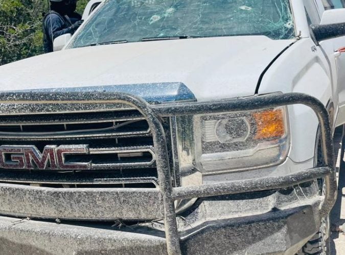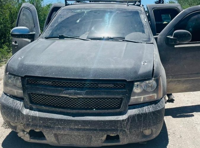 Asimismo, en la entrada al municipio de Méndez, Tamaulipas, un vehículo Ranger Rover color negro, se atravesó en la carretera, efectuando disparos con armas de fuego, repeliendo la agresión el personal e iniciando la marcha en retroceso citado vehículo hasta impactarse contra la vegetación a un costado de la carretera.