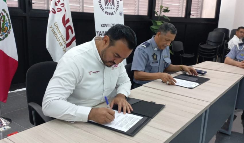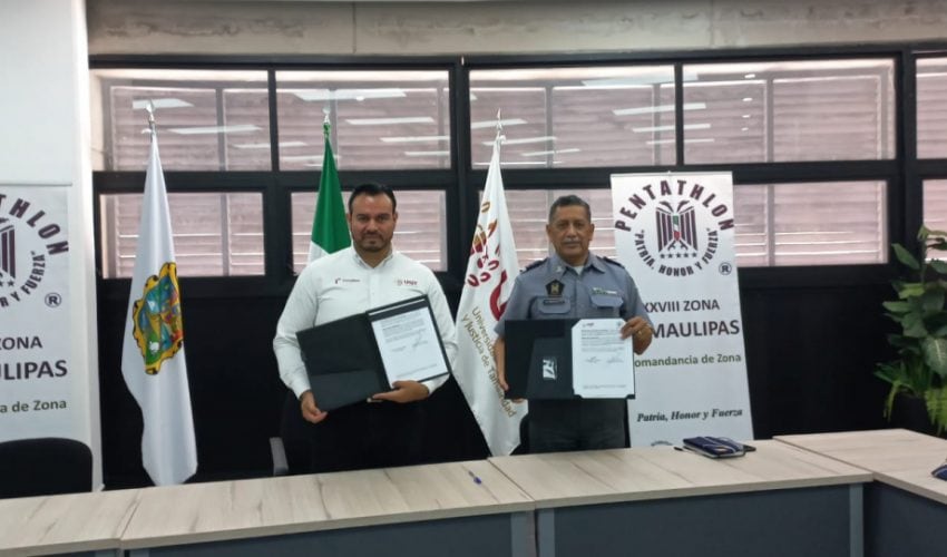 Ciudad Victoria, Tamaulipas.- A fin de coordinar acciones de interés común que permitan cumplir los objetivos institucionales, el Pentatlón Deportivo Militarizado Universitario A.C. y la Universidad de Seguridad y Justicia de Tamaulipas firmaron un acuerdo de colaboración.