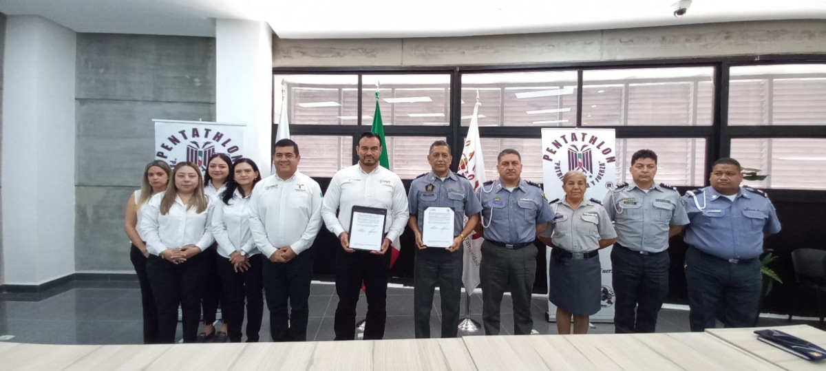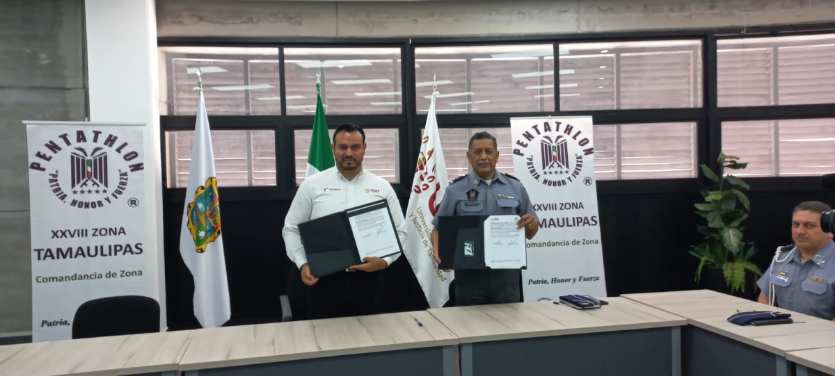 Ciudad Victoria, Tamaulipas.- A fin de coordinar acciones de interés común que permitan cumplir los objetivos institucionales, el Pentatlón Deportivo Militarizado Universitario A.C. y la Universidad de Seguridad y Justicia de Tamaulipas firmaron un acuerdo de colaboración.