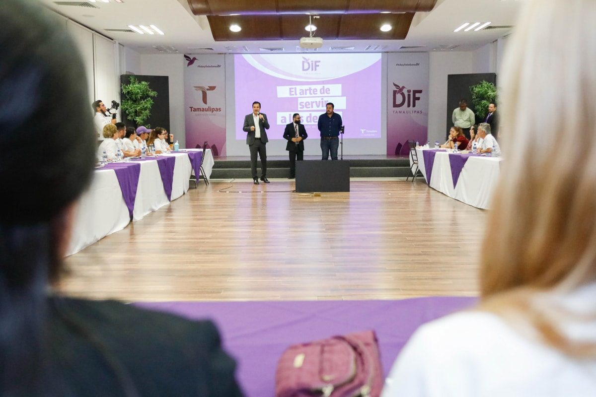 Ciudad Victoria, Tamaulipas.- Con el fin de impulsar un servicio más humanista y de calidad, el Sistema DIF Tamaulipas, que preside María de Villarreal, impartió el Taller “El arte de servir a los demás”, a personal de casas hogares y de atención al público de los diferentes programas.