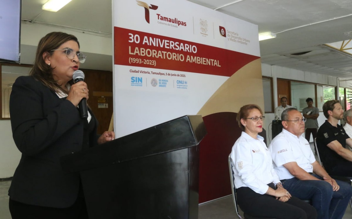 Ciudad Victoria, Tamaulipas. – En el marco de la conmemoración del “Día Mundial del Medio Ambiente”, la titular de la Secretaría de Desarrollo Urbano y Medio Ambiente, Karina Lizeth Saldívar Lartigue, asistió al Laboratorio Ambiental del Estado de Tamaulipas, para a su vez, celebrar el 30 aniversario, desde que a iniciativa del entonces gobernador Américo Villarreal Guerra, padre del actual mandatario estatal Américo Villarreal Anaya, correspondió fundar este centro de análisis e investigación.