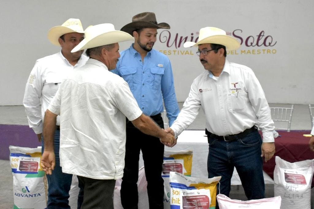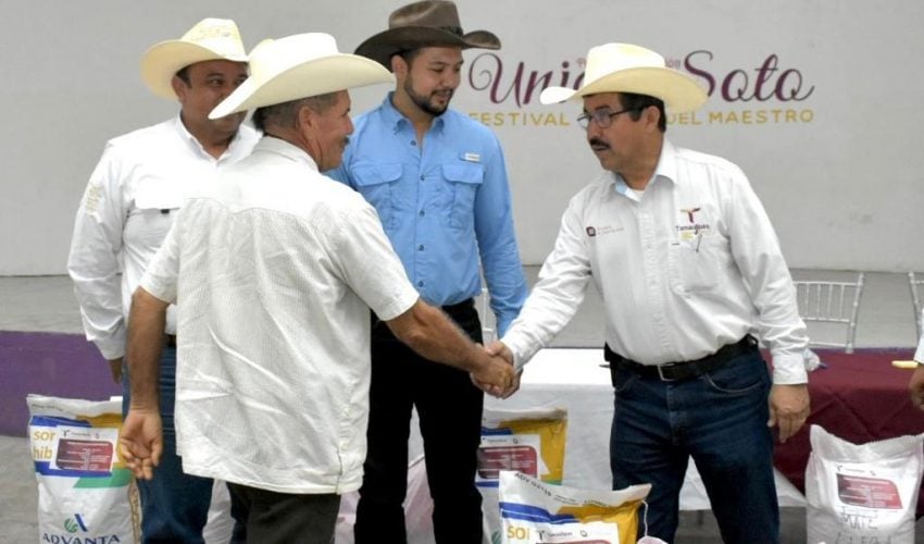 Fueron un total de 174 productores de diferentes comunidades de los municipios de Abasolo y Soto La Marina quienes recibieron la semilla de calidad para sembrar más de 2 mil hectáreas con el propósito de aprovechar las condiciones que prevalecen en algunas localidades en condiciones de riego y temporal.