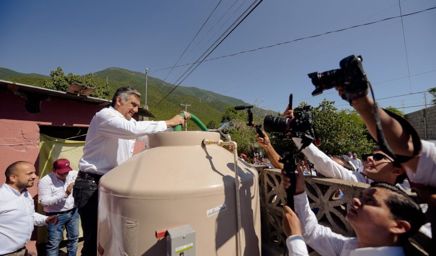 Durante la ceremonia cívica de honores, celebrada en el Paseo Pedro J. Méndez y acompañado por la presidenta del DIF estatal, María Santiago de Villarreal, el gobernador dio el banderazo de salida a los 12 camiones, unos con capacidad de diez mil litros, otros con capacidad de veinte mil litros y después llegó hasta las calles de la periferia, en la colonia Ampliación Luis Echeverría, enclavada en la Sierra Madre, en donde personalmente llenó tinacos y tanques de almacenamiento con el vital líquido.