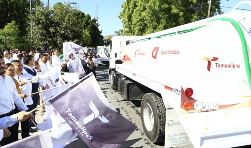 -Entrega 12 camiones cisterna y acude a entregar agua en colonias de Victoria, enclavadas en la Sierra Madre