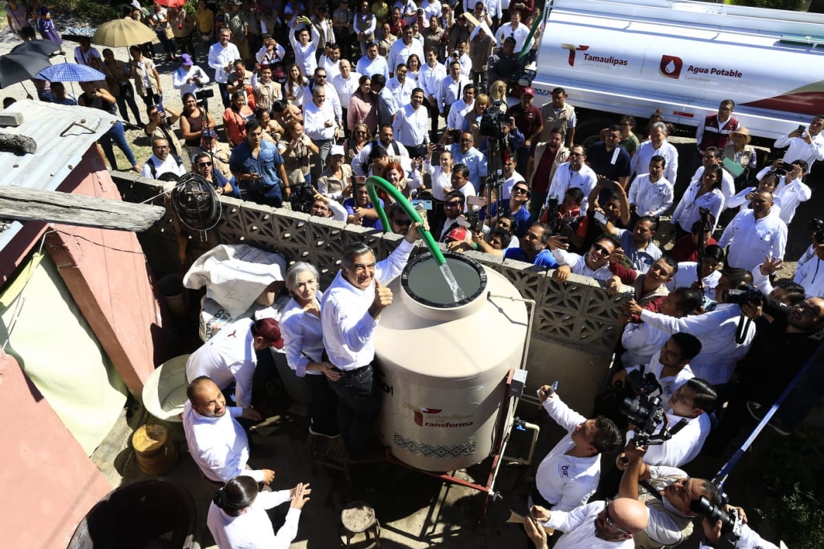 Tras la ceremonia de honores, Américo Villarreal subió a una de las pipas y se trasladó por toda la calzada general Luis Caballero, hasta la colonia Ampliación Luis Echeverría, en donde personalmente junto con su esposa, María Santiago de Villarreal, atendió las demandas de los habitantes de este sector e inició el reparto de agua.