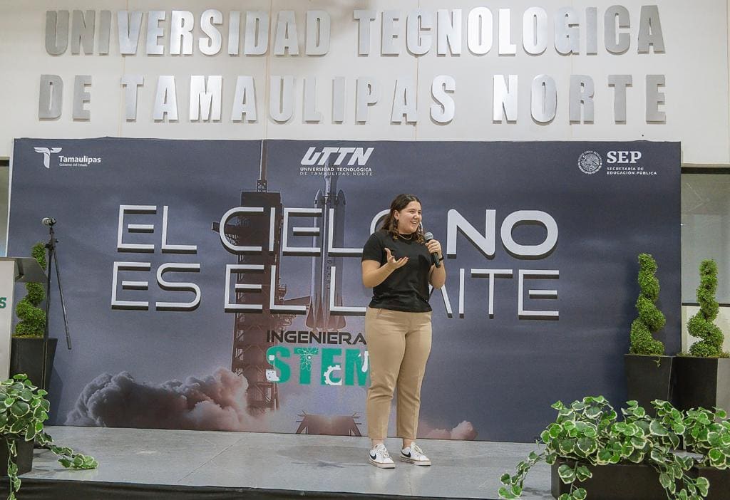 Las y los estudiantes tuvieron también la oportunidad de participar en la conferencia magistral “El Cielo no es el Límite”, impartida por la astronauta análoga tamaulipeca, Anna Laura Rodríguez López.
