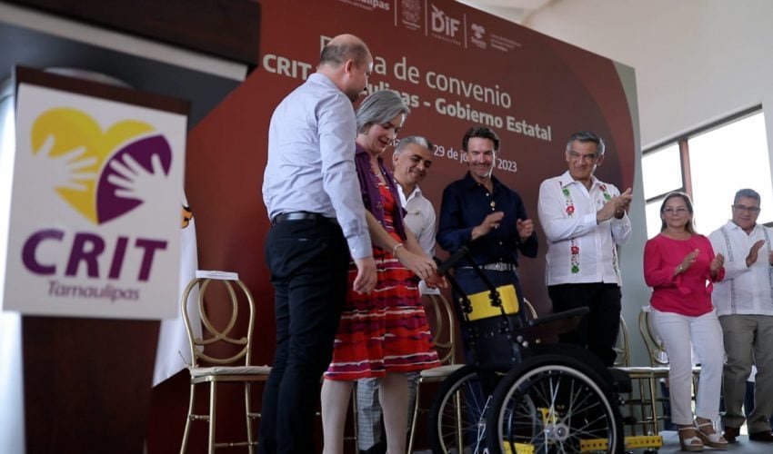 Altamira, Tamaulipas.  En el marco de las actividades que se realizaron en las instalaciones del Centro de Rehabilitación e Inclusión Infantil Teletón (CRIT) ubicado en el municipio de Altamira, el Sistema DIF Tamaulipas que preside la doctora María Santiago de Villarreal, recibió un donativo de 20 sillas de ruedas.