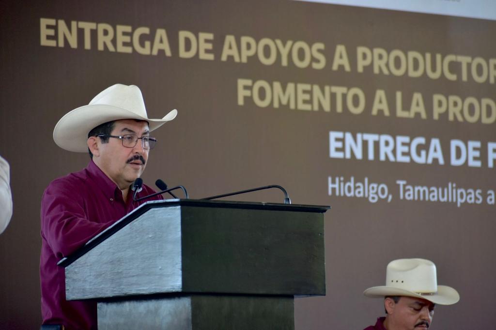 Al hacer uso de la palabra el representante de la Secretaría de Agricultura y Desarrollo Rural en Tamaulipas, Guadalupe Acevedo González comentó que el gobierno federal trabaja de la mano con los productores que están registrados en el padrón de Producción para el Bienestar que son los que siembran granos básicos como frijol y maíz, siempre buscando que sean más eficientes en sus cultivos y en la producción.