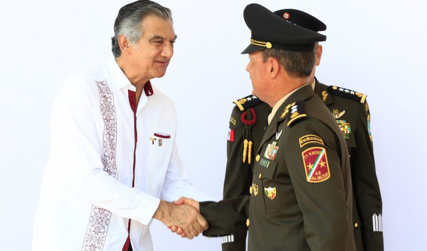 Asiste gobernador Américo Villarreal a la toma de posesión del comandante de la 48/a Zona Militar