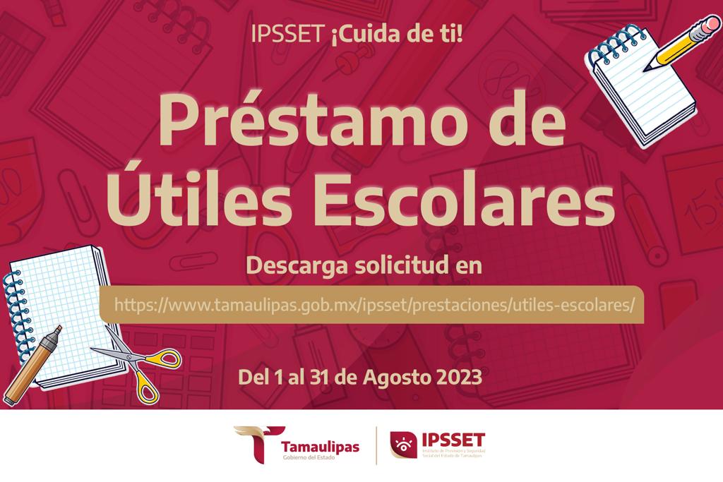 Ciudad Victoria, Tamaulipas.- En apoyo a la economía de los servidores públicos del Gobierno del Estado, el Instituto de Previsión y Seguridad Social del Estado de Tamaulipas, pone a disposición de los trabajadores durante todo el mes de agosto, un préstamo para útiles escolares por la cantidad de $1,200 a pagar a ocho quincenas sin intereses.