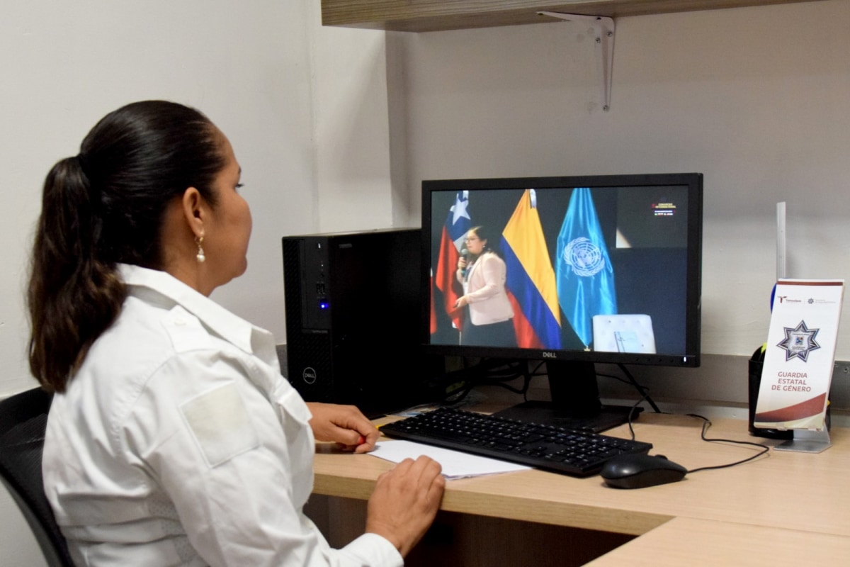 Ciudad Victoria, Tamaulipas.-Reafirmando el compromiso de la capacitación constante al personal de la Secretaría de Seguridad Pública de Tamaulipas (SSPT), elementos de la Guardia Estatal de Género asistieron de manera virtual a la quinta edición del Congreso Internacional de Seguridad y Proximidad Social.