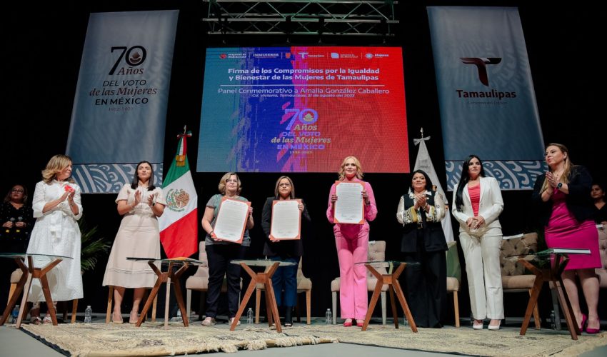 En el marco del 70 aniversario del voto de las mujeres en México y con la asistencia de la presidenta del Instituto Nacional de las Mujeres, (INMUJERES) Nadine Gasman Zylbermann, se firmó este compromiso por parte de la secretaria de Bienestar Social, Verónica Adriana Aguirre de Los Santos, en representación del mandatario estatal y la directora general del Instituto de las Mujeres en Tamaulipas, Dianaluz Gutiérrez González.
