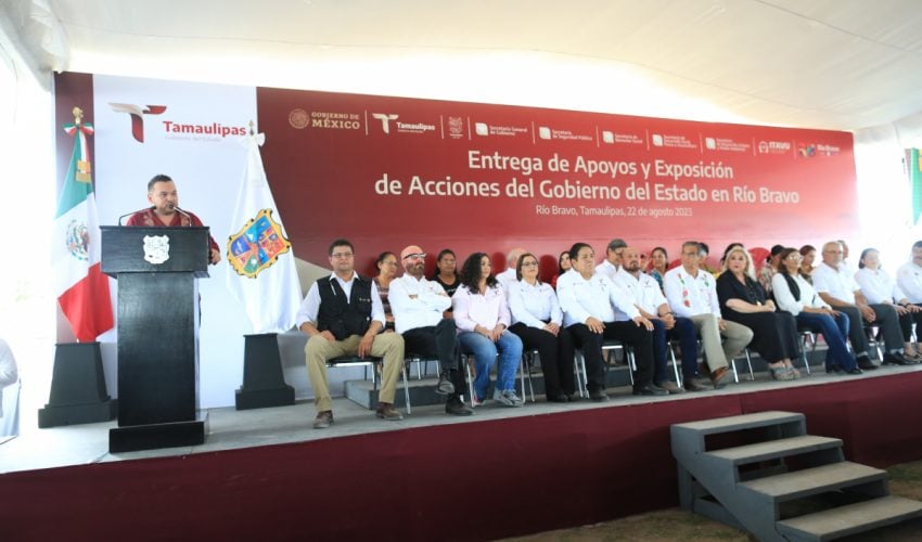 Río Bravo, Tamaulipas. – En el marco de la entrega de apoyos en beneficio de familias de Río Bravo y Valle Hermoso, el gobernador Américo Villarreal Anaya dio instrucciones precisas para que a partir de mañana se refuerce la seguridad de los trabajadores en la brecha 109 de este municipio y anunció nuevas inversiones en obra pública, rehabilitación de escuelas, un gimnasio deportivo y equipo para el mejoramiento de los servicios públicos.