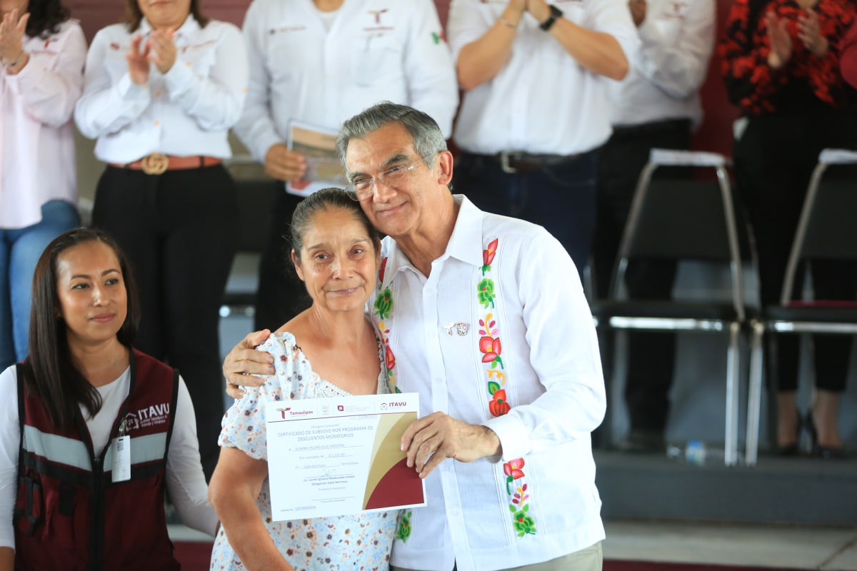 En un emotivo acto, la tarde de este martes, en la Unidad Deportiva «Las Liebres», el gobernador de Tamaulipas recibió el afecto y cariño de las y los riobravenses, entre ellos, la señora Maribel Martínez de la Rosa, quien visiblemente emocionada, al tener en sus manos la constancia de la condonación de intereses moratorios de parte del ITAVU, aseguró que Tamaulipas tiene «un gobernador con un corazón de oro».