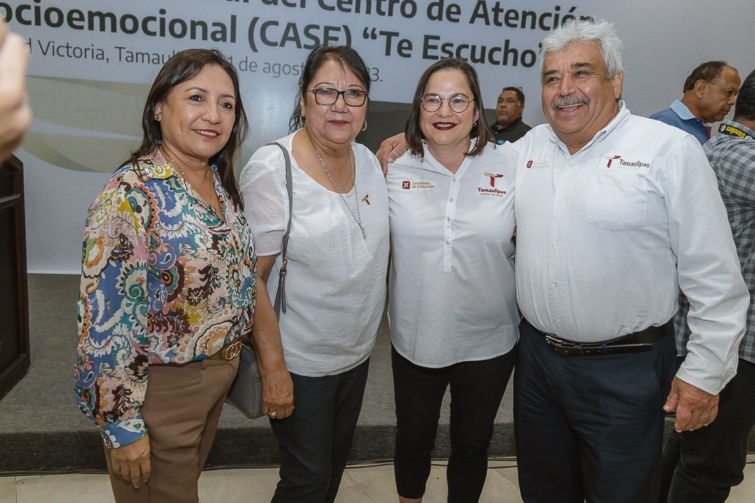 Asistieron a la presentación e inicio de actividades del Centro de Atención Socioemocional “Te Escucho”, autoridades federales, estatales y sindicales, quienes se comprometieron y celebraron la creación de este proyecto que busca la estabilidad emocional y el bienestar del sector educativo de Tamaulipas.