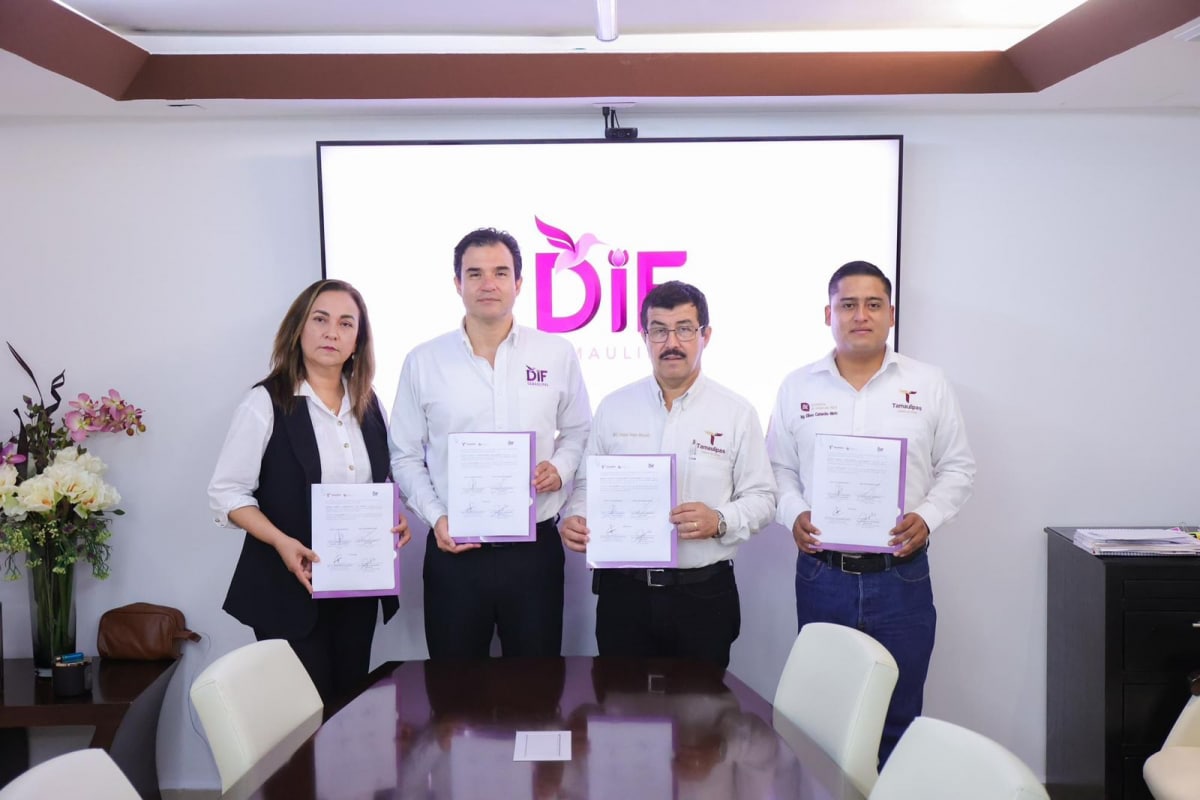 El convenio de colaboración lo firmaron, por una parte, el secretario de Desarrollo Rural, Pesca y Acuacultura, Dámaso Leonardo Anaya Alvarado y el director general del Sistema DIF Tamaulipas, Geancarlo Bonetta Cavazos, quien mencionó que cada asistente a esa feria recibirá además, una bolsa ecológica que les permitirá llevar sus productos y será reutilizable, ayudando con esto al cuidado del medio ambiente.