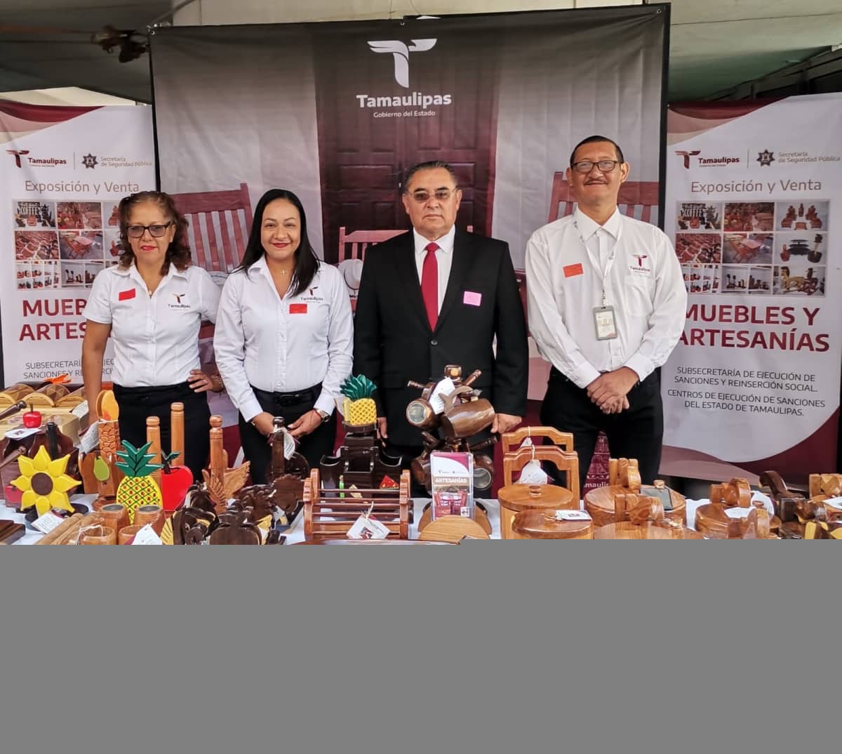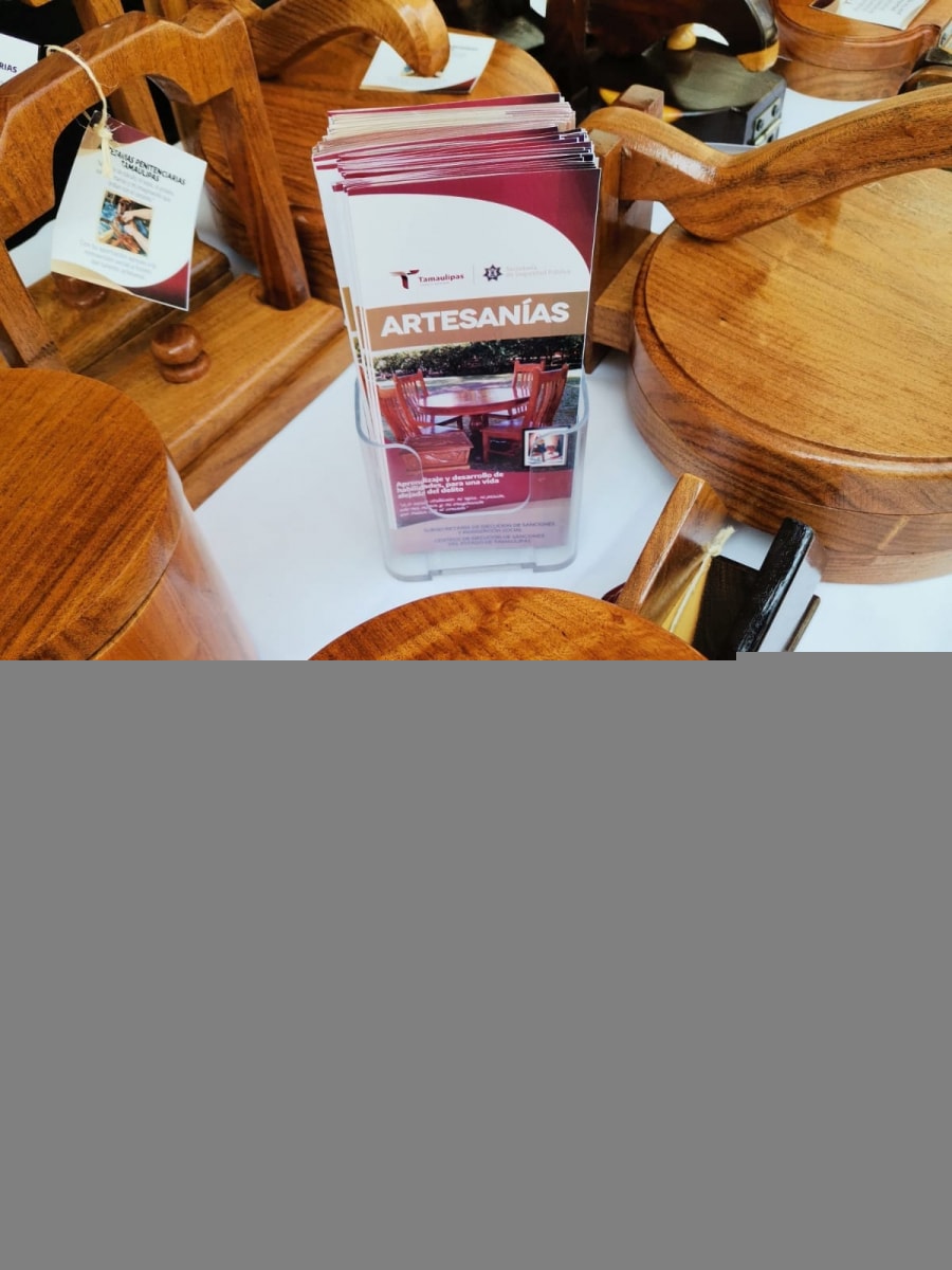 Además se incluyeron muebles de madera elaborados en los diferentes Centros de Ejecución de Sanciones (CEDES) que existen en Tamaulipas, en los que el taller de carpintería forma parte de la estrategia de reinserción social y colocación en el mercado laboral de las PPLs.