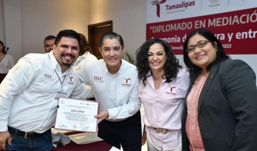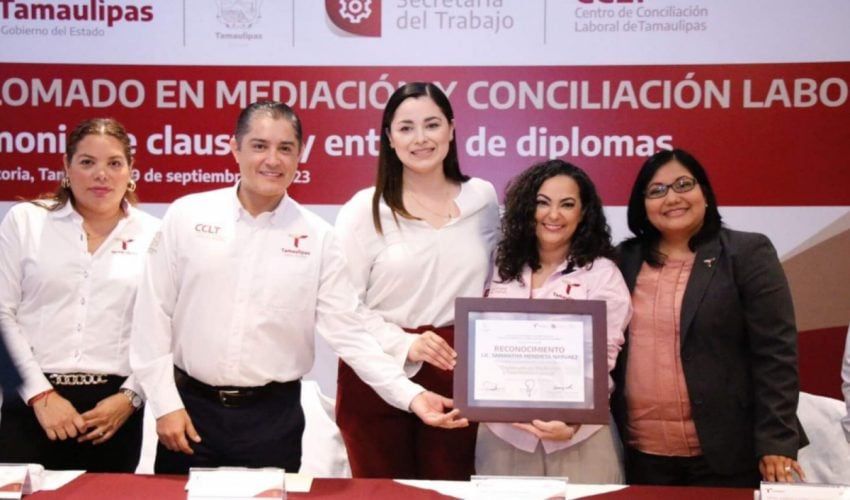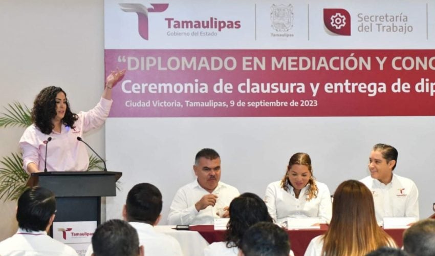 Ciudad Victoria, Tamaulipas.- Servidores públicos integrantes de los Centros de Conciliación Laboral de la Secretaría del Trabajo de Tamaulipas, recibieron su constancia por haber concluido el diplomado en conciliación y mediación que tuvo una duración de once semanas y que tiene el propósito de la capacitación y actualización permanente, para seguir cumpliendo con la visión del gobernador Américo Villarreal Anaya. de impartir justicia laboral, pronta y expedita y ubicar al estado en los mejores lugares a nivel nacional en los indicadores de efectividad y agilidad de la conciliación laboral.