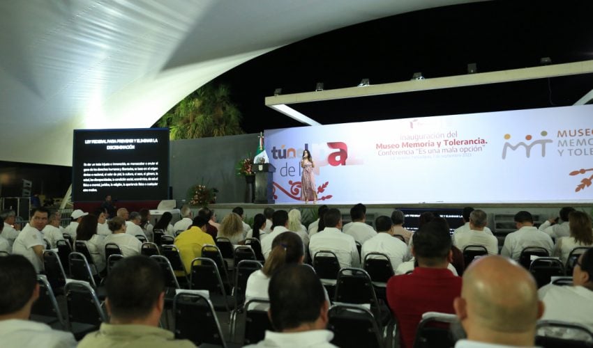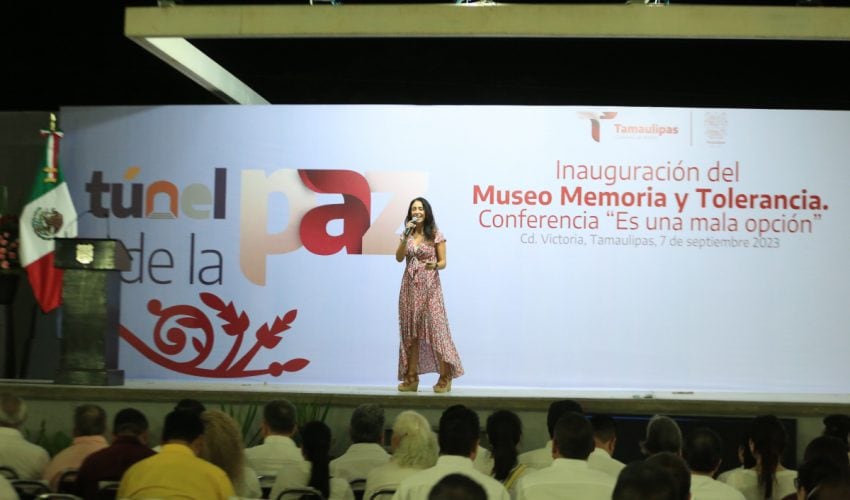 Por su parte, la coordinadora del Museo Memoria y Tolerancia, Pola Salmún, agradeció al Gobierno de Tamaulipas, la disposición para presentar la exhibición del Túnel de la Paz, que estará en 12 municipios y que incluye conferencias virtuales para hablar de tolerancia, inclusión, diversidad y los derechos humanos en México; además brindó una conferencia denominada “Es una mala opción”.