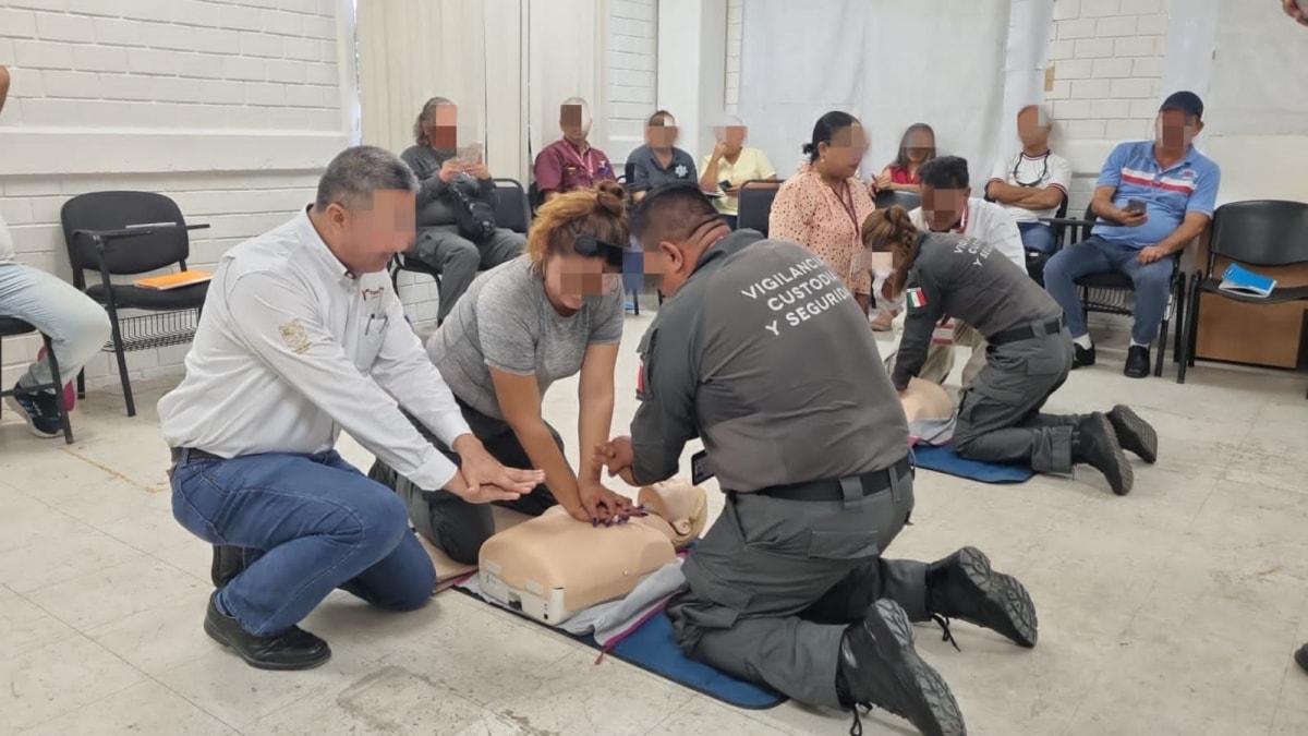 Ciudad Victoria, Tamaulipas. – Para garantizar una respuesta inmediata ante posibles situaciones de riesgo y emergencias al interior de los Centros de Ejecución de Sanciones (CEDES) de la entidad, el personal operativo que labora al interior de estos centros, recibe capacitación por parte de la Coordinación Estatal de Protección Civil (PC) Tamaulipas.