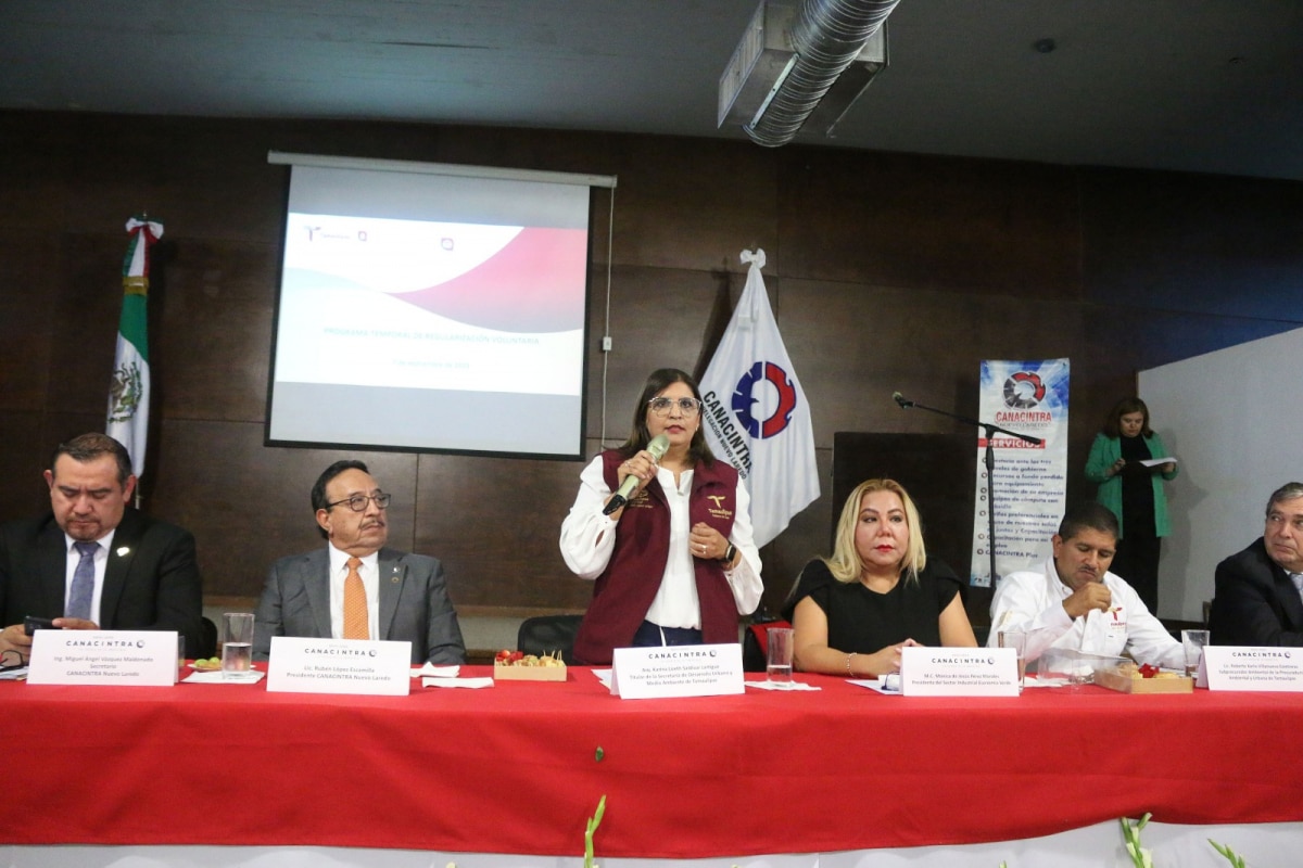 Nuevo Laredo, Tamaulipas.- En un esfuerzo conjunto por impulsar el desarrollo económico y la sostenibilidad en la región fronteriza de Nuevo Laredo, la Secretaría de Desarrollo Urbano y Medio Ambiente (SEDUMA) y la Cámara Nacional de la Industria de Transformación (CANACINTRA), se unieron para enfrentar los desafíos y soluciones necesarios para lograr un equilibrio crucial entre el crecimiento y la preservación del entorno natural a través del Programa Temporal de Regularización Voluntaria.