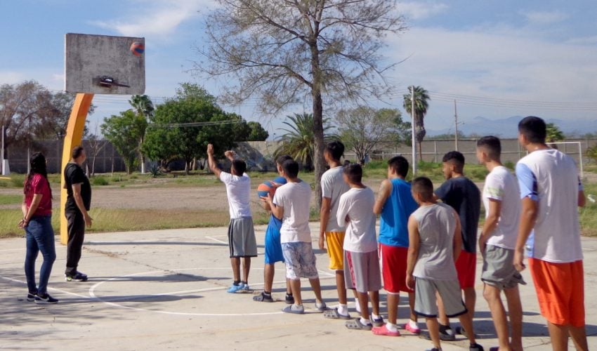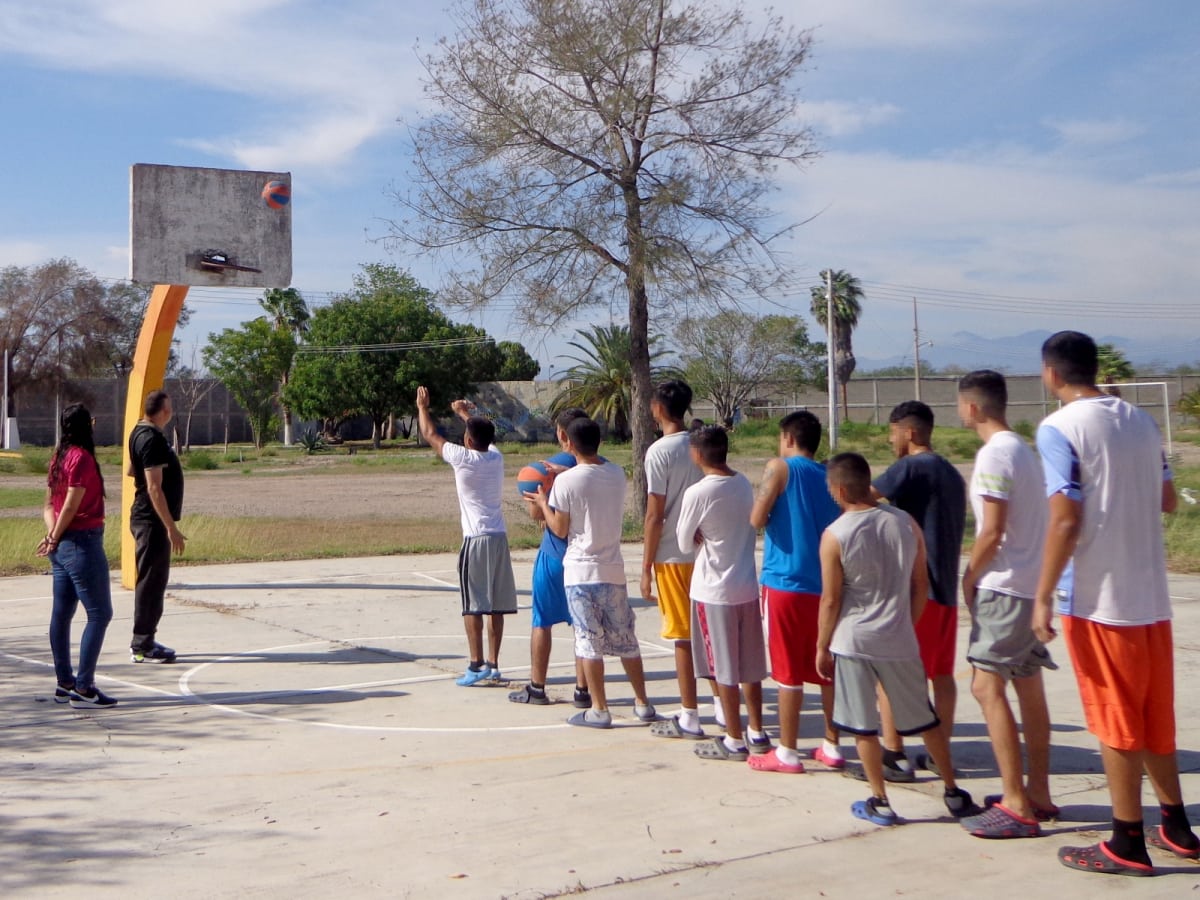 En esta visita, adolescentes que se encuentran cumpliendo una medida privativa de la libertad, recibieron una plática de introducción al deporte y participaron en un entrenamiento deportivo enfocado al basquetbol.
