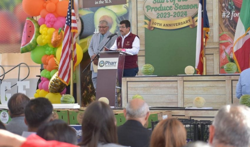 Pharr, Texas.- Con la finalidad de dar inicio a la temporada de producción agrícola de frutas, vegetales y hortalizas en el puente internacional Pharr, Texas, el secretario de Desarrollo Rural, Pesca y Acuacultura, Dámaso Anaya Alvarado asistió a la celebración del décimo aniversario del «Star of the Produce Season 2023-2024».