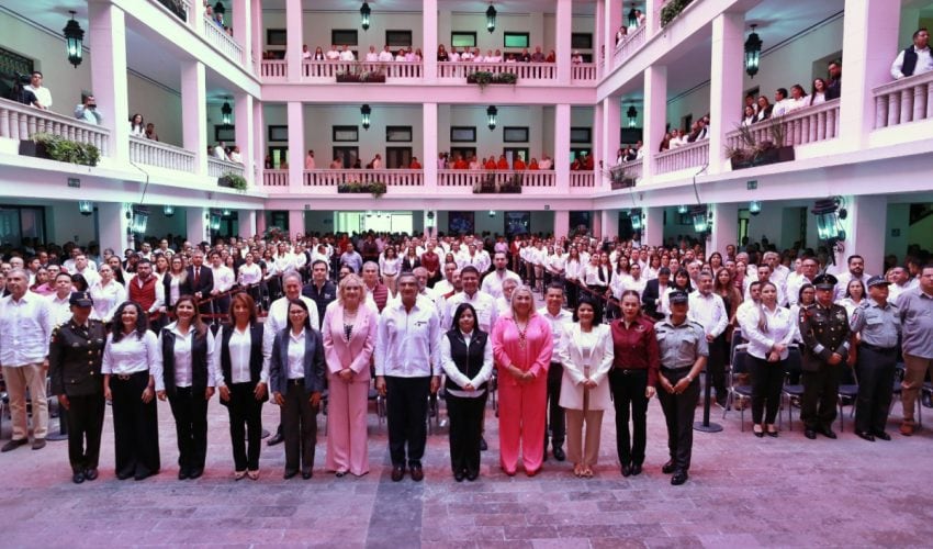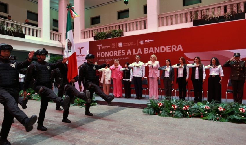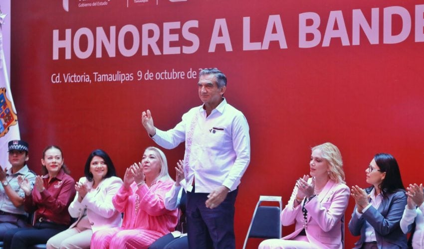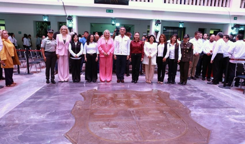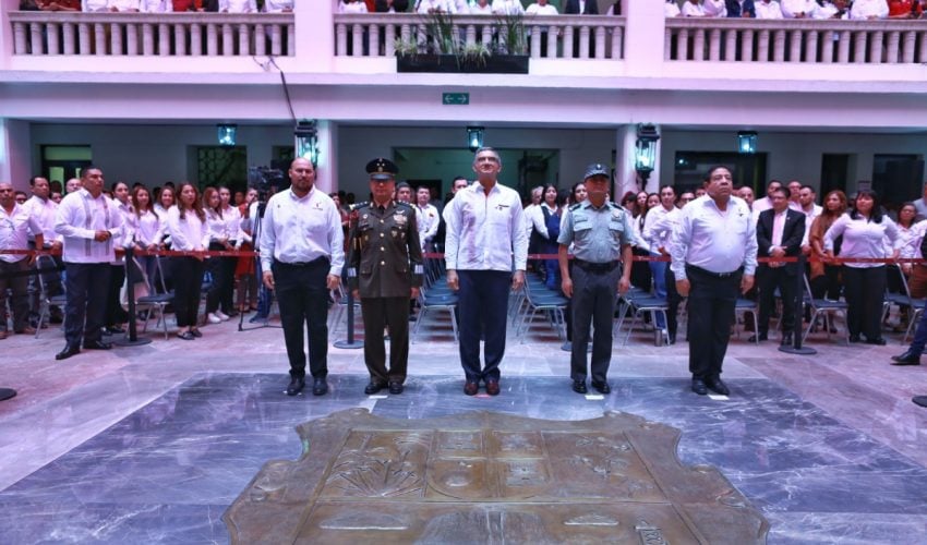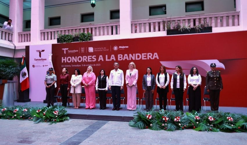 Tras citar a mujeres que se destacaron por diversas aportaciones como Gertrudis Bocanegra, Estefanía y Teodosia Castañeda, así como a Rita Cetina, el mandatario estatal también se refirió a la inclusión del escudo de Tamaulipas en el punto central del patio, colocado como parte de un proceso de restauración del edificio, símbolo del patrimonio de las y los tamaulipecos.