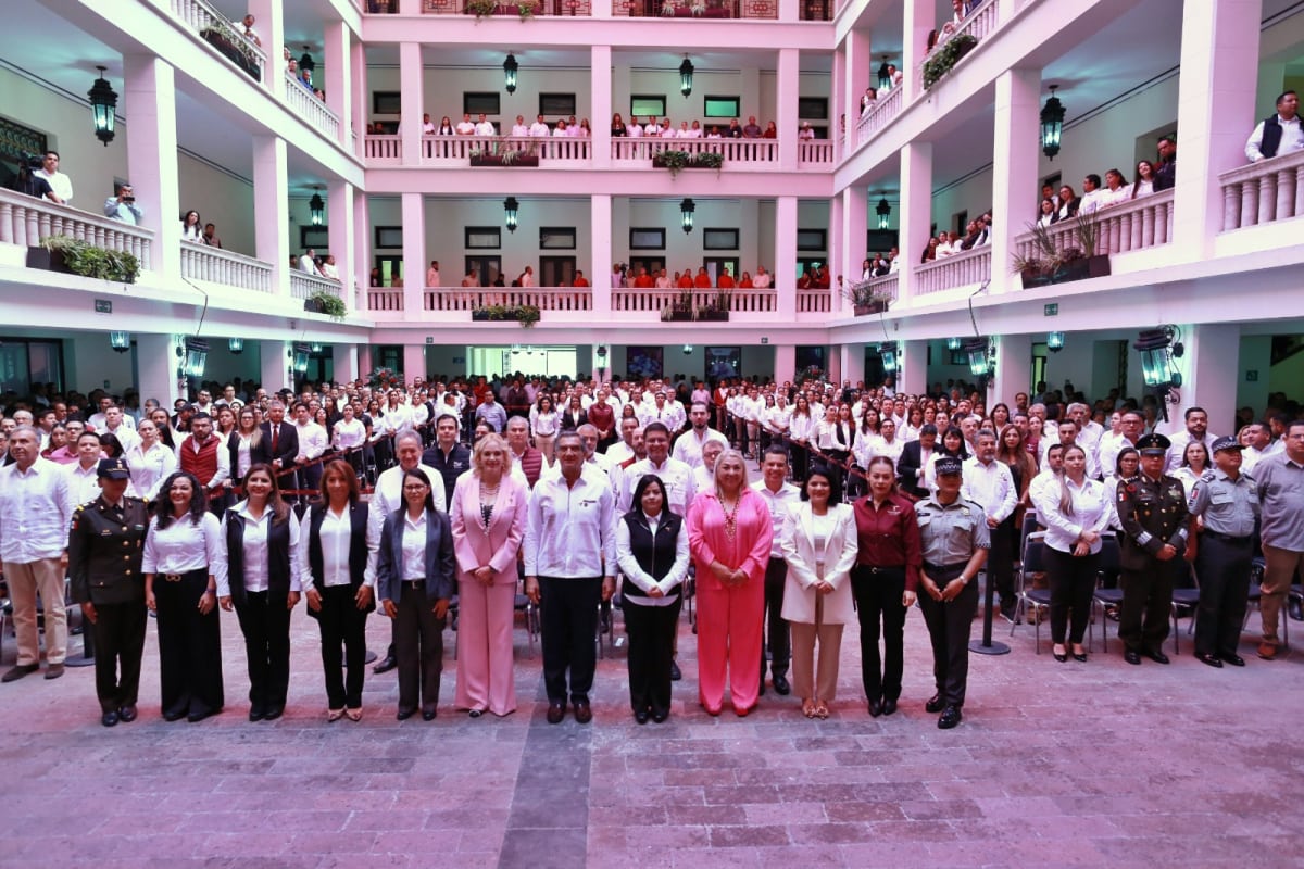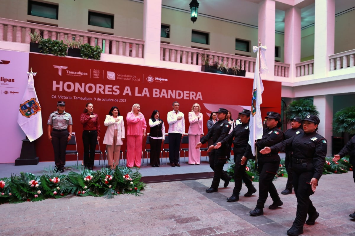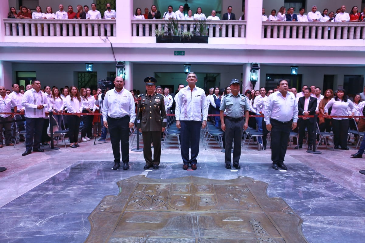 En la ceremonia de honores a la bandera, realizada en el patio interior de Palacio de Gobierno, con un presidium conformado por mujeres, secretarias del gabinete estatal, diputadas y representantes de las fuerzas de seguridad y ante la presencia de las y los trabajadores del Gobierno del Estado, el gobernador expresó que se debe seguir trabajando por el acceso al mismo trato, oportunidades, por el reconocimiento y ejercicio de los derechos humanos y las libertades de todas y todos.
