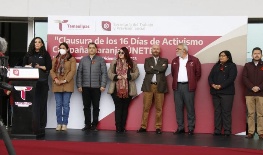 Ciudad Victoria, Tamaulipas.- La Secretaría del Trabajo clausuró las jornadas de actividades de la campaña Naranja-Únete que se llevó a cabo en diversos municipios en el norte, centro y sur del estado, para generar conciencia en la eliminación de la violencia contra las mujeres y las niñas, contando con la participación de autoridades federales, estatales y municipales, así como integrantes de la sociedad civil e instituciones académicas, que se sumaron a esta causa durante 16 días, en los que se fortaleció el activismo por el Día Naranja en Tamaulipas.