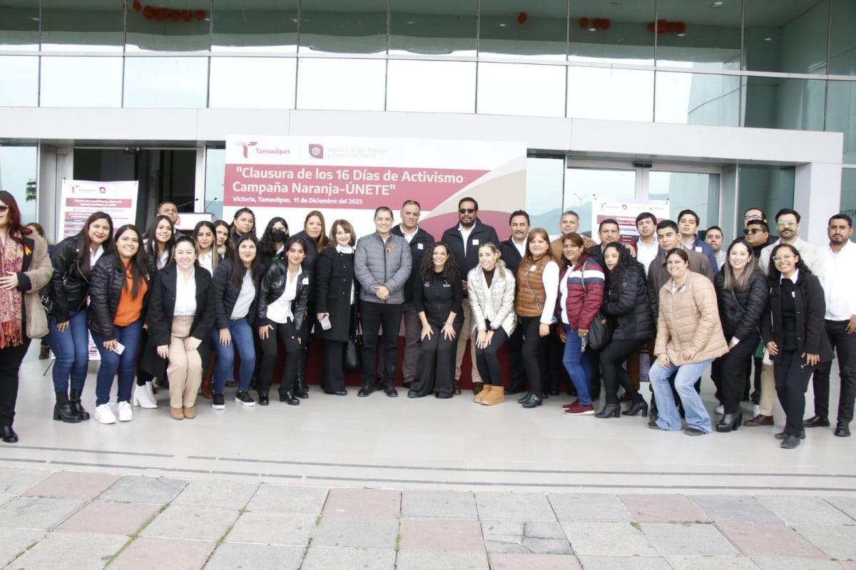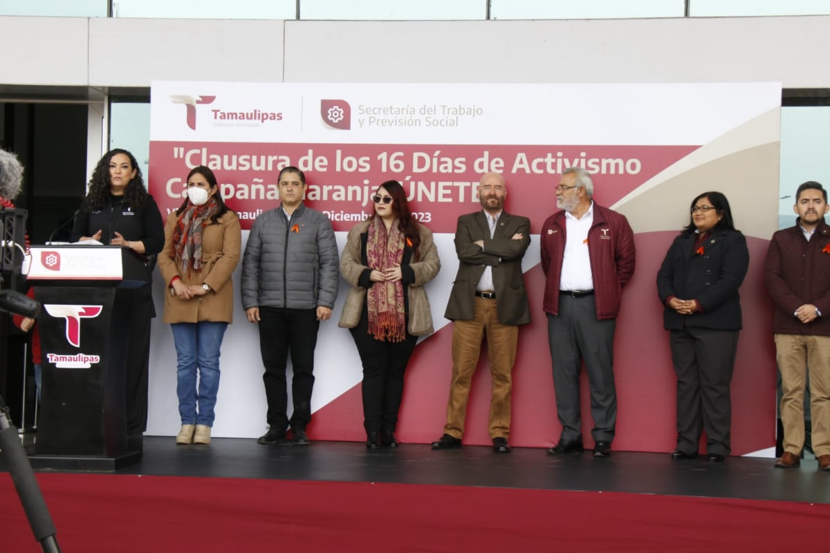Ciudad Victoria, Tamaulipas.- La Secretaría del Trabajo clausuró las jornadas de actividades de la campaña Naranja-Únete que se llevó a cabo en diversos municipios en el norte, centro y sur del estado, para generar conciencia en la eliminación de la violencia contra las mujeres y las niñas, contando con la participación de autoridades federales, estatales y municipales, así como integrantes de la sociedad civil e instituciones académicas, que se sumaron a esta causa durante 16 días, en los que se fortaleció el activismo por el Día Naranja en Tamaulipas.