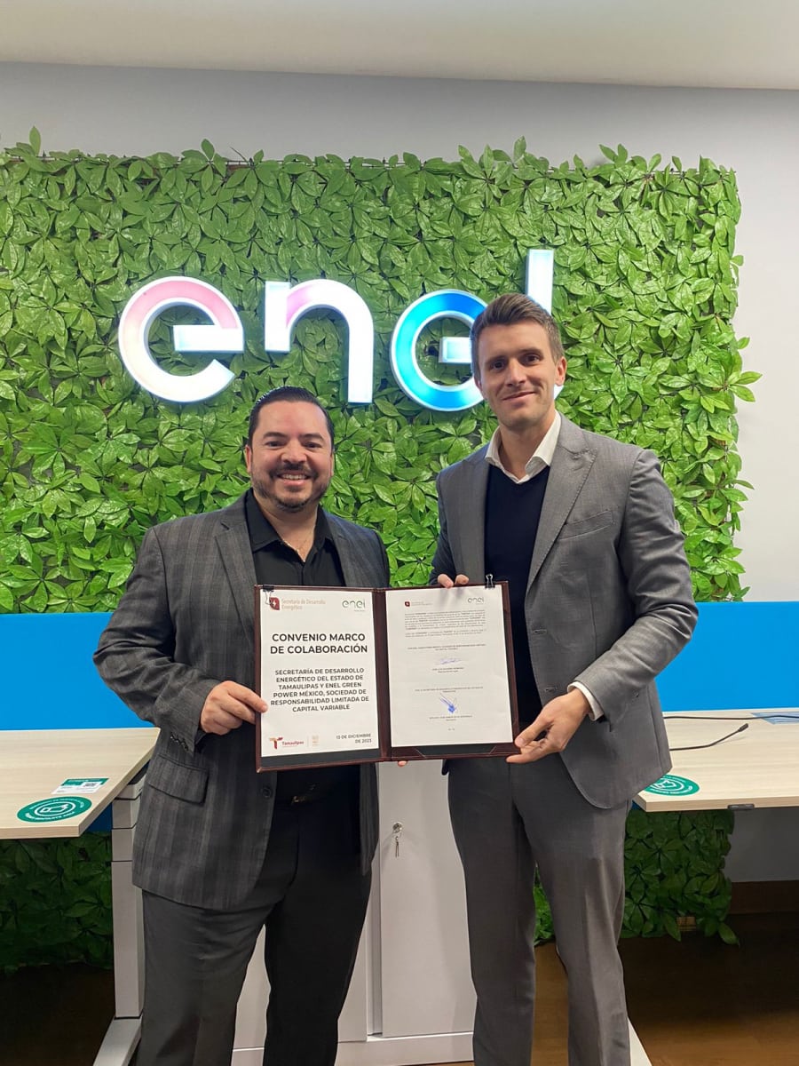 Firman convenio SEDENER y Enel México para impulsar sostenibilidad en sector eléctrico y transportista en Tamaulipas