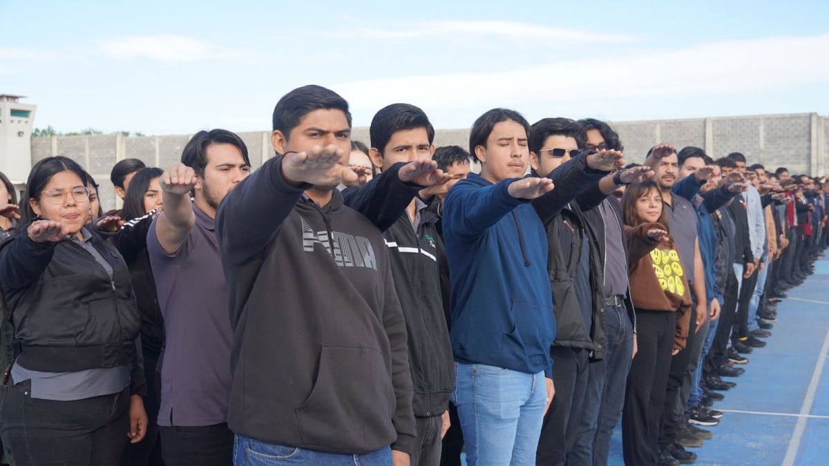 “En esta primera ceremonia de honores del 2024, si ustedes se fijan es distinta desde el lugar en el que estamos apostados”, dijo el rector al referirse al inicio de construcción de una techumbre autorizada por el gobernador Américo Villarreal Anaya en una de sus visitas a las instalaciones y gracias también al respaldo del secretario Sergio Hernando Chávez García ante la necesidad de realizar las prácticas de elementos en activo y alumnos quienes las hacían bajo las inclemencias del sol.