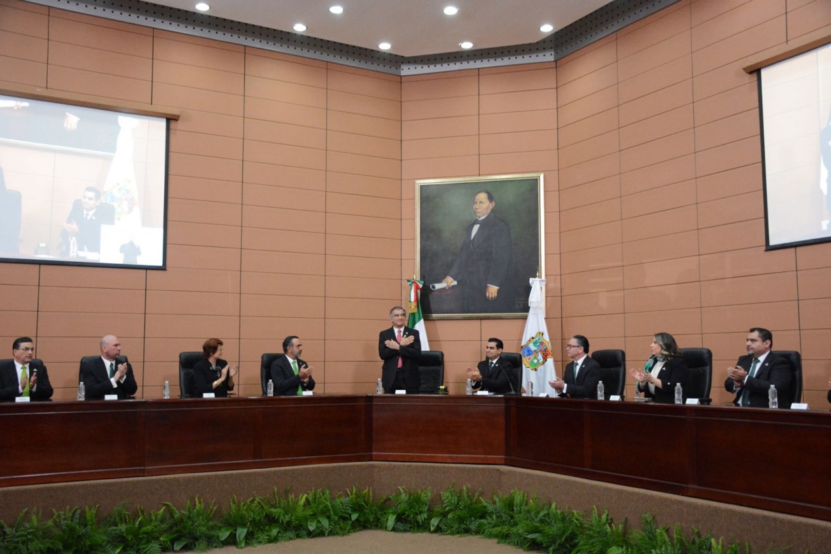 “Quiero reafirmarle nuestra contribución a ese propósito desde nuestra actualizada forma de administrar justicia para la consecución de la armonía y paz social. Cuente con nosotros señor gobernador, cuente con el Poder Judicial de Tamaulipas”, expresó.