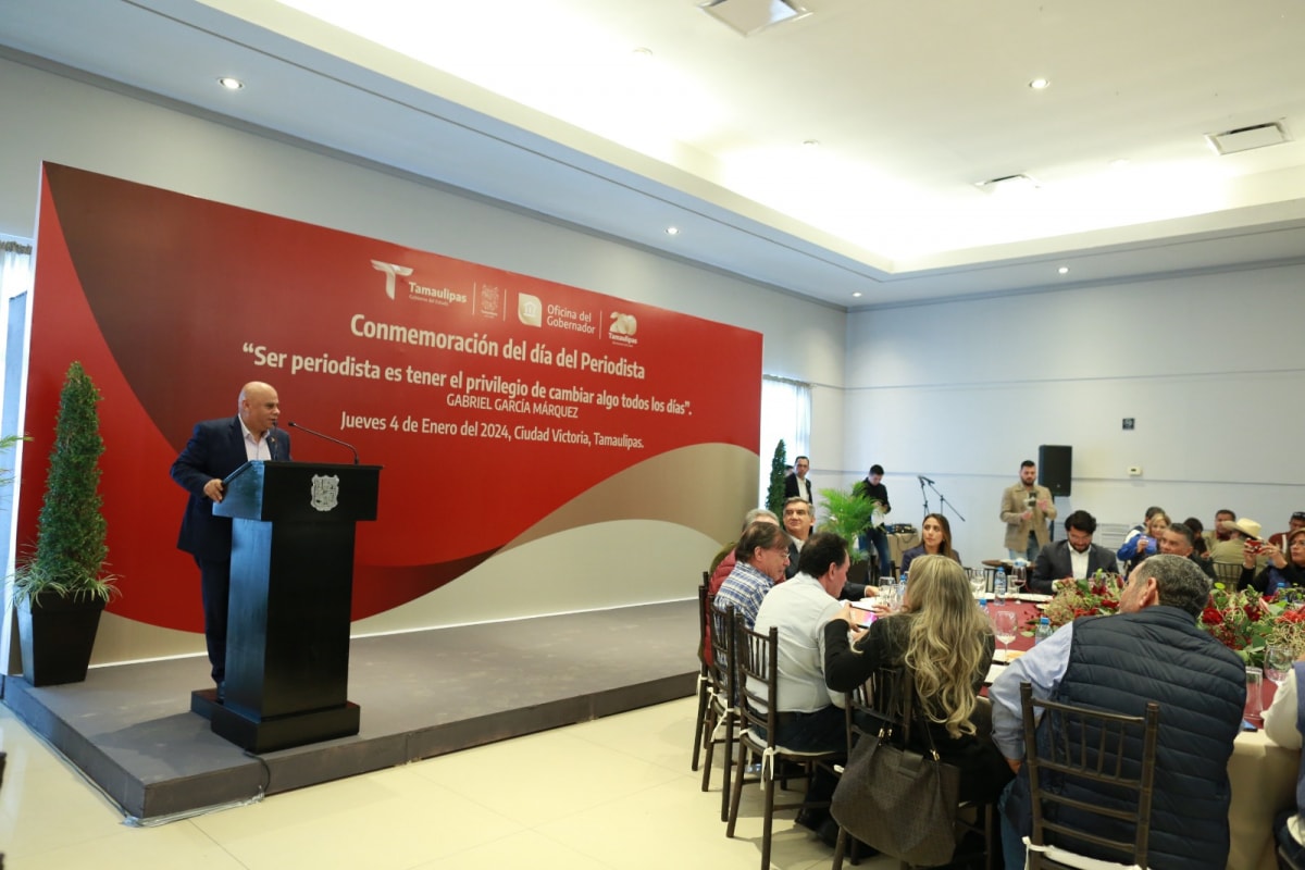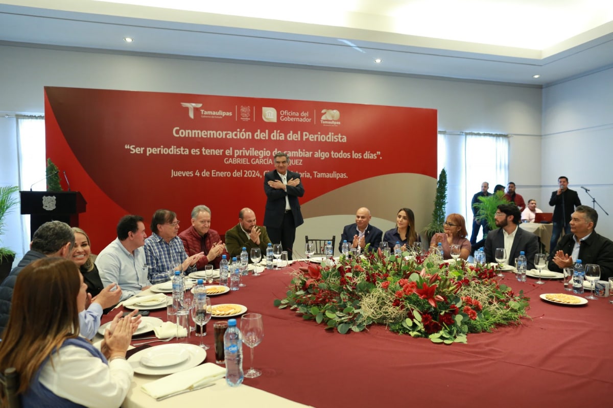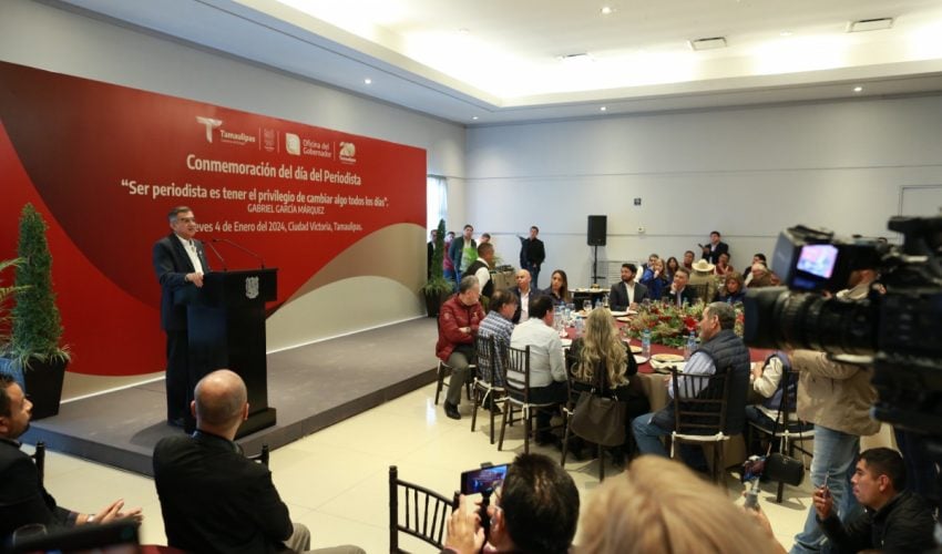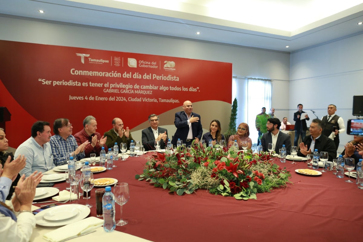 “Tamaulipas está en una nueva etapa, transformadora y en el terreno comunicacional, Tamaulipas vive una etapa de transparencia, de rendición de cuentas, una etapa en donde ustedes los compañeros de los medios de comunicación tienen la plena libertad de ejercer la tarea de informar”, expresó.