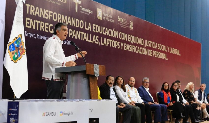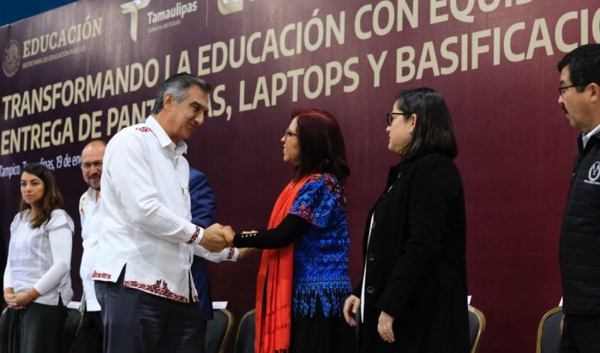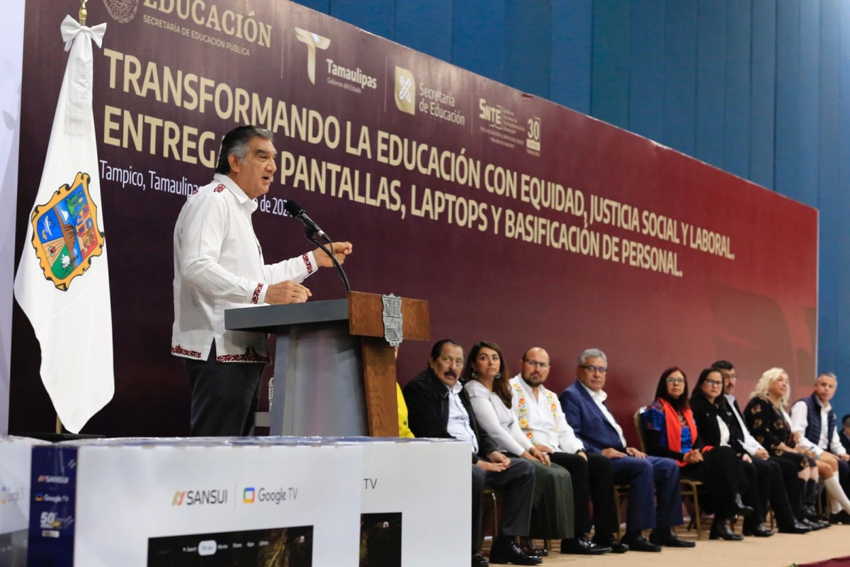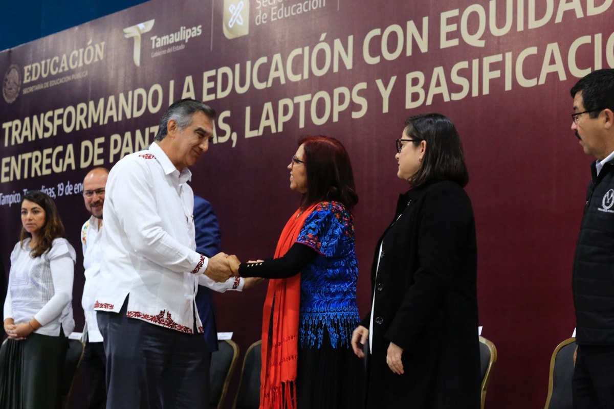 Durante la ceremonia de entrega de 505 pantallas de televisión para la Red Edusat a 239 telesecundarias y telebachilleratos; 930 equipos de cómputo (laptops) del Fideicomiso de Apoyo de Tecnologías Educativas y 3 mil 215 nombramientos de basificación a personal docente y administrativo de la Secretaría de Educación de Tamaulipas, la titular de la SEP, Leticia Ramírez Amaya reconoció que a un año del gobierno de Américo Villarreal ya se dejan ver los avances de la transformación en el estado.