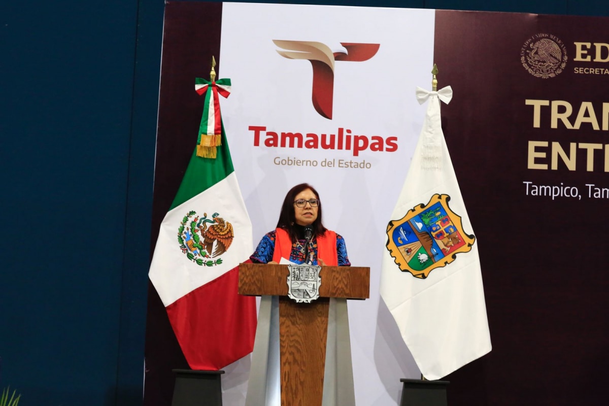 En su intervención, la secretaria de Educación en Tamaulipas, Lucía Aimé Castillo destacó que bajo el liderazgo del gobernador Américo Villarreal Anaya Tamaulipas «tiene rumbo y está cumpliendo».