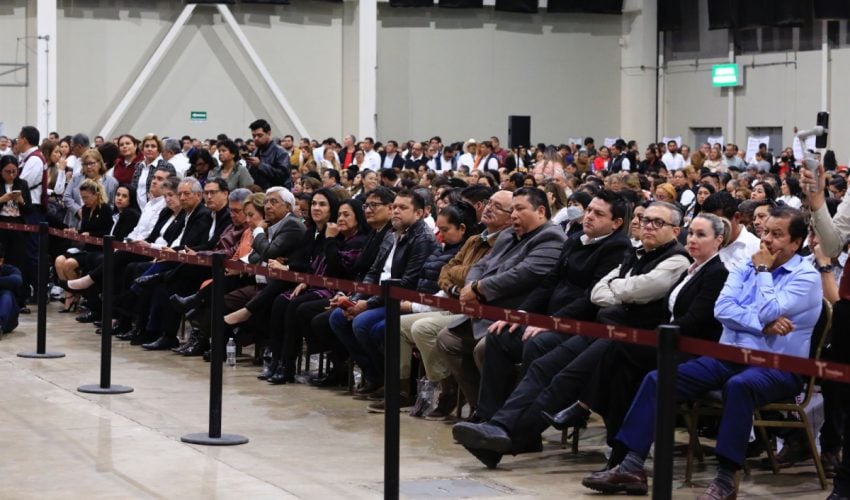 «Estamos aliviando retrasos de muchos años, de muchas decenas de años. Ahorita, los compañeros que pasaron a recoger su nombramiento, que estamos actualizando a más de 3 mil compañeros en el estado, hay algunos que llevaban esperando los 24 años, 10 años, 8 años», añadió.