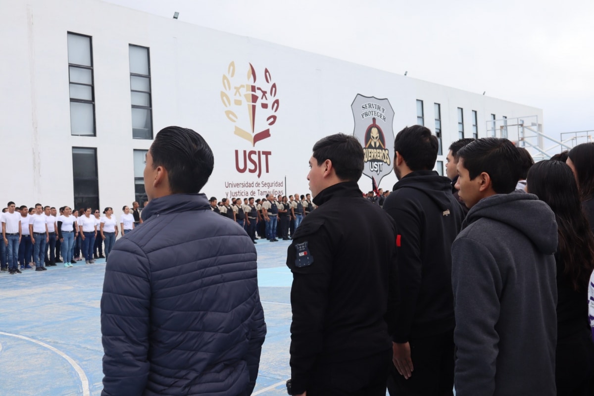 En ceremonia de honores y ante la presencia del director general de Formación y Servicio Profesional de Carrera de la Fiscalía General de Justicia, Jorge Adrián Gómez Carreño; del director del Instituto de Formación Profesional de la FGJT, Gildardo Iván Félix Durán; así como del director del Consejo de Desarrollo Policial de la Secretaría de Seguridad Pública, Eduardo Ibarra Cuevas, el director jurídico de la USJT, Juan Carlos Soto García agradeció la estrecha colaboración con la Fiscalía de Justicia, con quienes se ha logrado trabajar en una serie de cursos para beneficio de la sociedad tamaulipeca.