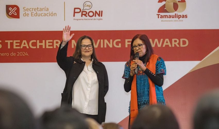 La secretaria de Educación de Tamaulipas, Lucía Aimé Castillo Pastor, y la titular de la SEP, asistieron a este foro de docentes de inglés realizado en el municipio de Tampico, donde tuvieron la oportunidad de dialogar y escuchar acerca de las diferentes necesidades para continuar con el proceso de enseñanza de esta lengua en las aulas escolares del estado.
