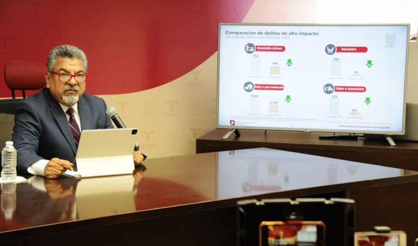 “En homicidio doloso bajó un 53 por ciento; en secuestro disminuyó 90 por ciento; en robo a casa habitación presentó reducción del 52 por ciento; en robo a transeúnte, 81 por ciento fue la disminución; en extorsión se redujo un 40 por ciento; en robo de vehículo se redujo un 52 por ciento; en robo a negocio disminuyó un 27 por ciento y únicamente en el delito de violencia familiar se presentó un incremento del 21 por ciento”.