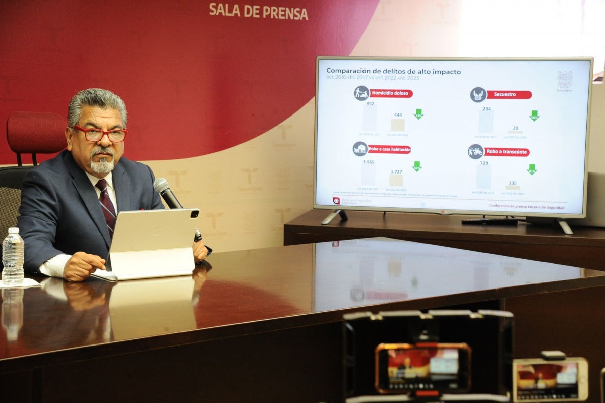 Durante la rueda de prensa semanal, explicó que estos resultados son logros de la actual administración, lo cual, dijo: “nos mantiene comprometidos para esforzarnos cada día más y nos encaminamos a erradicar el estigma de un Tamaulipas violento”.