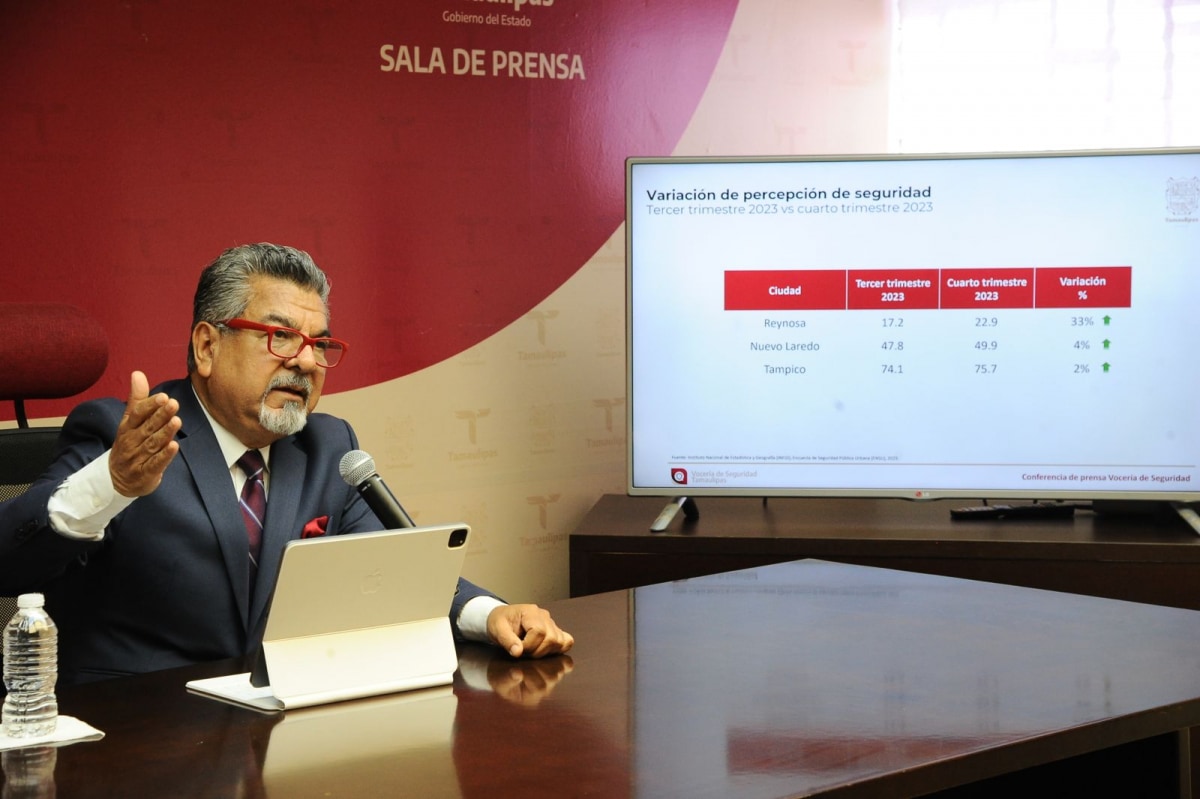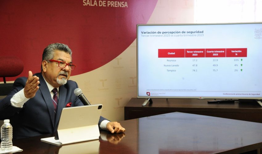 El vocero de Seguridad Pública de Tamaulipas, Jorge Cuéllar Montoya señaló que en la Encuesta Nacional de Seguridad Pública Urbana, publicada por el INEGI y que corresponde al cuarto trimestre de 2023 (octubre a diciembre), en tres de las cuatro ciudades consideradas, se registró este incremento de percepción de seguridad, comparado con el trimestre anterior.