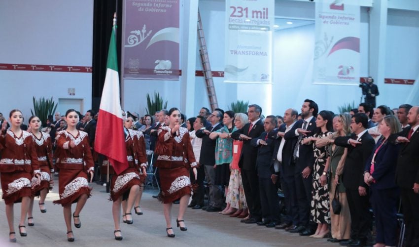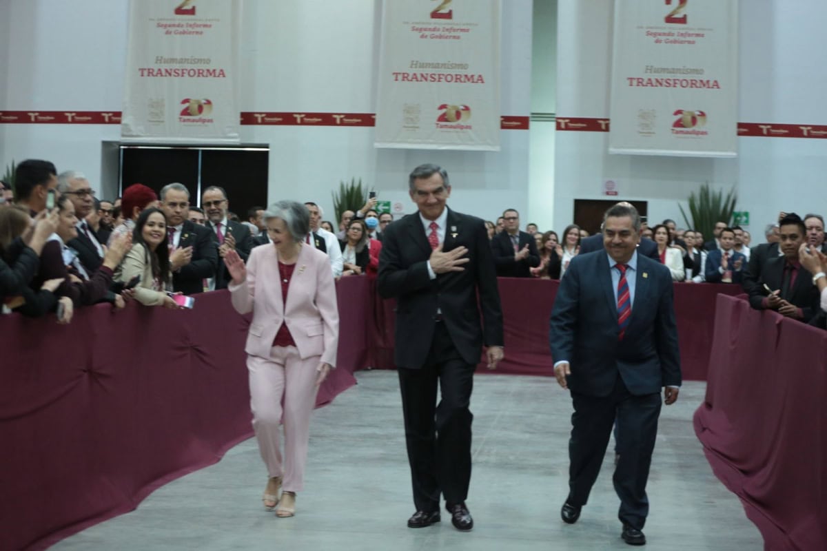 En su mensaje con motivo del Segundo Informe de Gobierno, en el Polyforum de Ciudad Victoria y acompañado por el secretario de Energía, Miguel Ángel Maciel Torres, representante del presidente de México, Andrés Manuel López Obrador,  y de la presidenta del Sistema DIF Tamaulipas, María de Villarreal, el gobernador aseguró que un gobierno humanista debe contribuir al bienestar y al desarrollo social, basado en los valores de la verdad, la justicia y la honestidad.