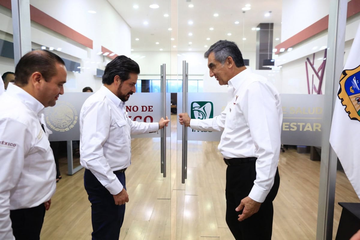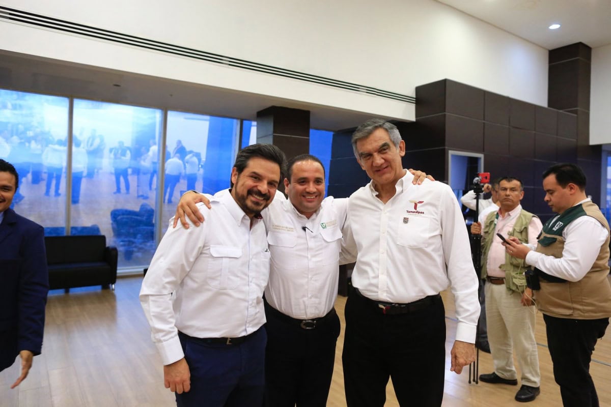 También acompañaron al gobernador: Bladimir Martínez Ruiz, titular de la Unidad de Planeación Estratégica y Coordinaciones estatales del IMSS Bienestar; Eduardo Martínez Bermea, coordinador estatal del OPD Servicios de Salud IMSS- Bienestar en Tamaulipas; Vicente Joel Hernández Navarro, secretario de Salud; Federico Marín Martínez, delegado del IMSS en Tamaulipas y Juan Cardona, secretario técnico del IMSS -Bienestar.