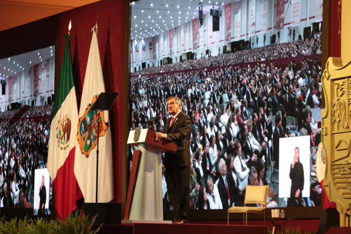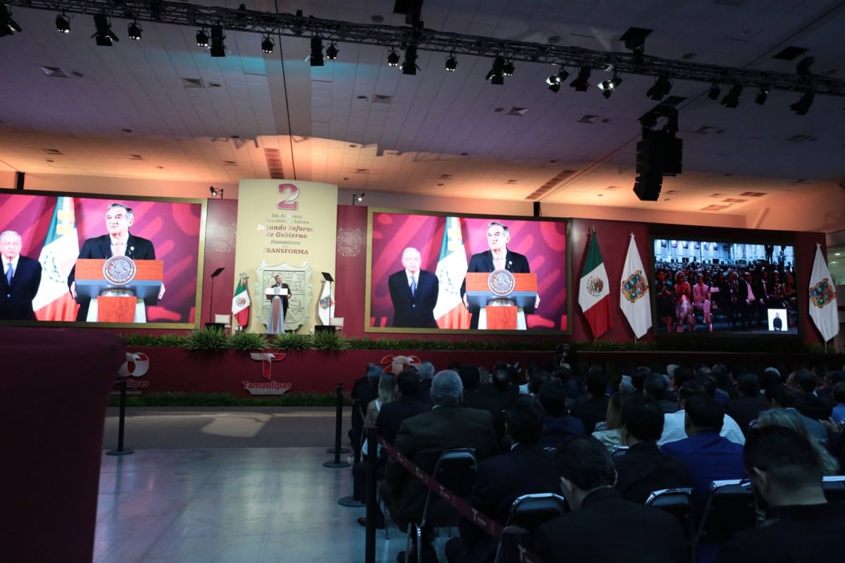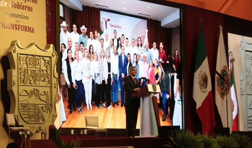 En un mensaje al pueblo de Tamaulipas, desde el Polyforum de Ciudad Victoria, con motivo de su Segundo Informe de Gobierno y ante el secretario de Energía, Miguel Ángel Maciel Torres, quien acudió con la representación del presidente de México, Andrés Manuel López Obrador, el gobernador agregó que en Tamaulipas hay un gobierno que rompió definitivamente con el modelo neoliberal que causó tanto daño al pueblo y al estado y que en los últimos años presentó en nuestra tierra la más decadente de sus versiones.