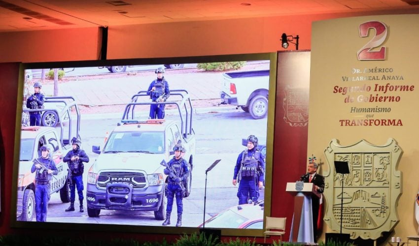 Villarreal Anaya mencionó que su gobierno ha dado la más alta prioridad para garantizar la paz, la seguridad y la justicia, por lo que se decidió cambiar radicalmente la estrategia, además del equipamiento de 310 patrullas nuevas, 52 de ellas blindadas y 14 unidades tácticas de reacción rápida y la rehabilitación de seis helicópteros de los cuales cuatro participan ya en el despliegue de operaciones.